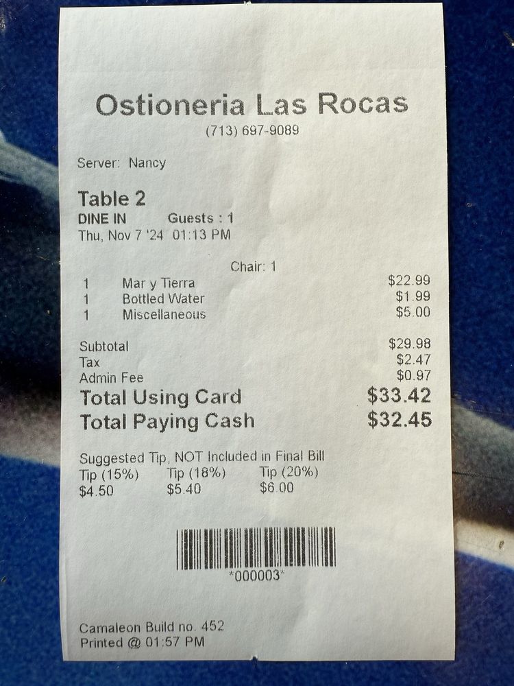 Introducing the menu at Ostioneria Las Rocas, a hidden gem located at 7220 Airline Dr, Houston, TX. Known for their flavorful entrees including Al Mojo de Ajo, A la Ranchera, Aguachiles, and A la Veracruzana. Don't miss out on their signature cocktails like Campechano Mix and Huilotas Botana. For a lighter option, try one of their fresh salads such as the Grilled Shrimp Salad or the Green Salad. Customers rave about the great salsa, tasty food, and professional service. With live performances and karaoke on weekends, this is the perfect spot for a late-night meal. Whether you're craving seafood or a hearty salad, Ostioneria Las Rocas has something for everyone.